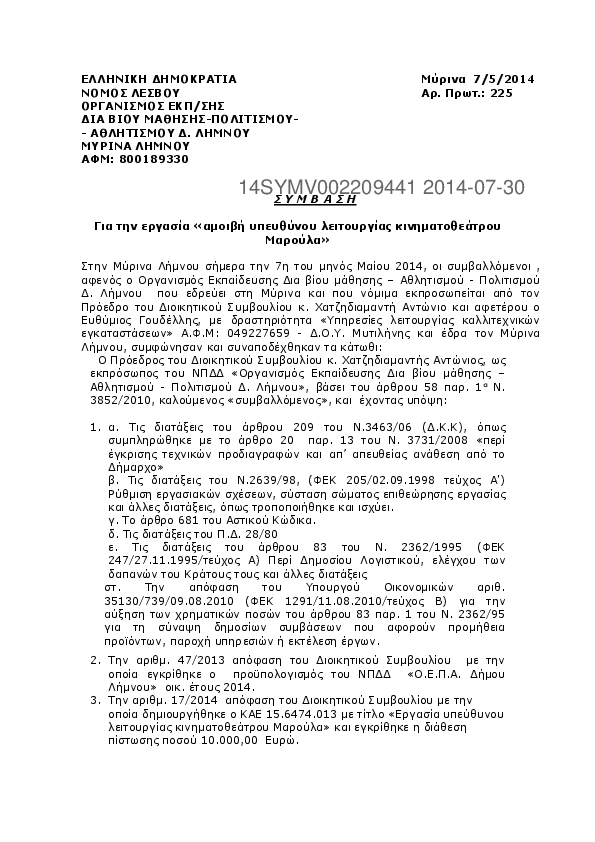 2. Σύμβαση εργασίας υπευθύνου λειτουργίας κινηματοθεάτρου Μαρούλα