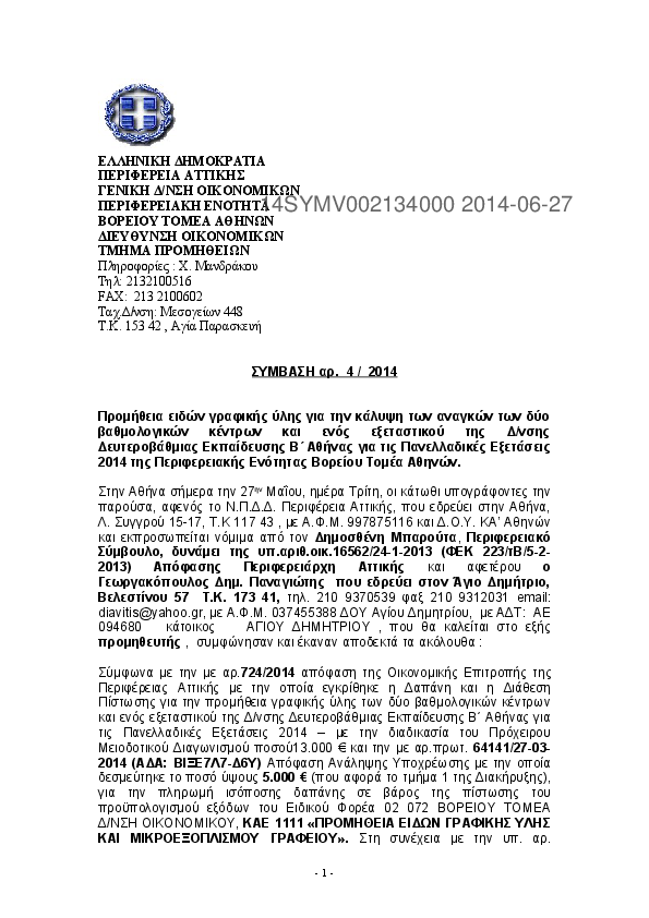 1. ΠΡΟΜΗΘΕΙΑ ΕΙΔΩΝ ΓΡΑΦΙΚΗΣ ΥΛΗΣ ΓΙΑ ΤΗΝ Δ/ΝΣΗ Β/ΘΜΙΑΣ ΕΚΠΑΙΔΕΥΣΗΣ Β ΑΘΗΝΑΣ ΓΙΑ ΤΙΣ ΠΑΝΕΛΛΑΔΙΚΕΣ.