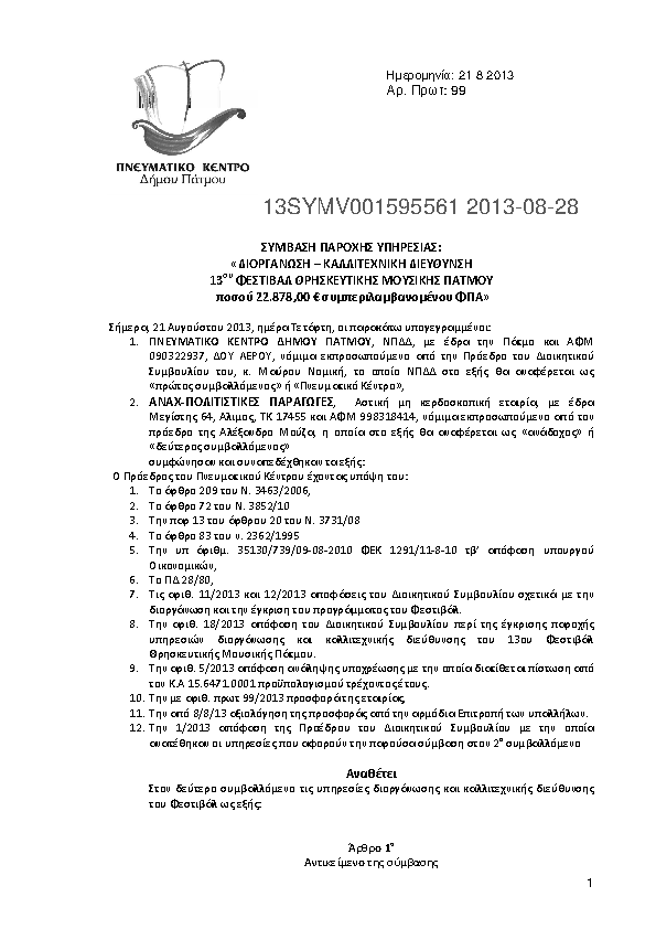 1. Παροχή υπηρεσίας "Διοργάνωση