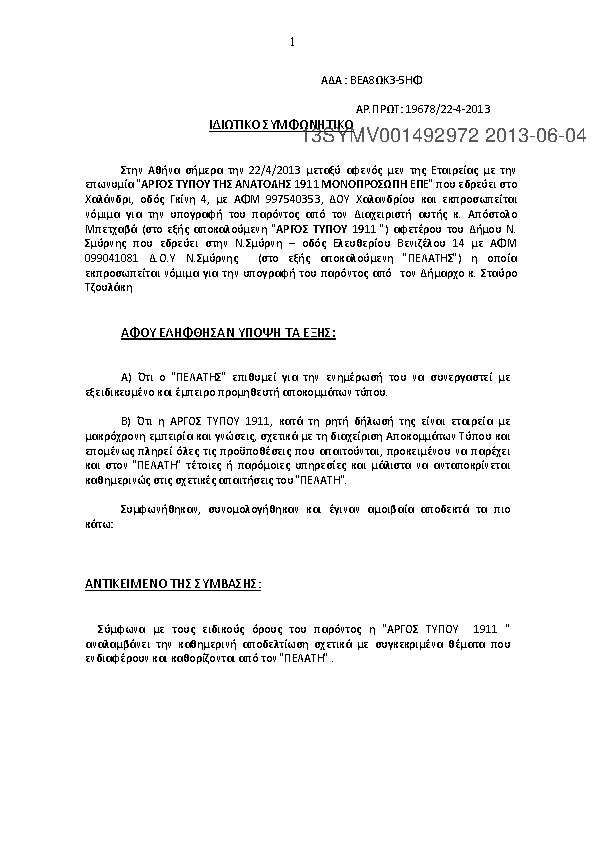 5. ΣΥΜΒΑΣΗ ΠΑΡΟΧΗΣ ΥΠΗΡΕΣΙΩΝ ΕΝΗΜΕΡΩΣΗΣ ΚΑΙ ΠΛΗΡΟΦΟΡΙΚΗΣ IN NEWS ΚΑΙ ΕΠΙΤΡΟΠΗ ΚΕΦΑΛΑΙΑΓΟΡΑΣ