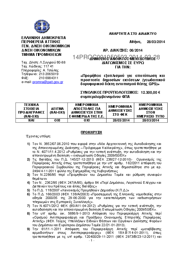 Αναζήτηση σε προκηρύξεις και συμβάσεις για:  αυθαιρετα