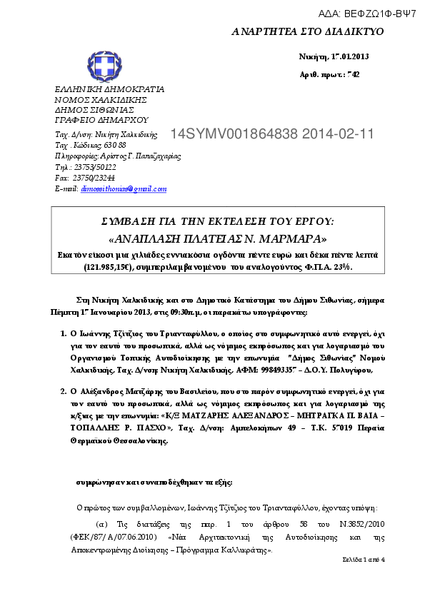 1. Συμφωνητικό για την προμήθεια προκατασκευασμένων τμημάτων συντριβανιού