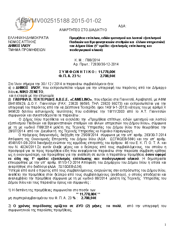 1. ΠΡΟΚΗΡΥΞΗ ΠΡΟΜΗΘΕΙΑΣ ΕΝΟΣ ΑΝΑΡΡΟΦΗΤΙΚΟΥ ΣΑΡΩΘΡΟΥ