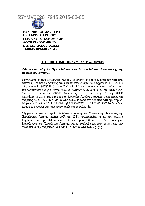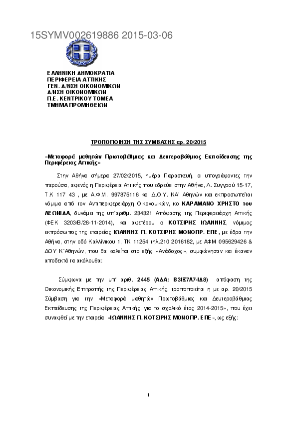 2. Τροποποίηση ΣΥΜΒΑΣΗΣ 20/2015 ΜΕΤΑΦΟΡΑΣ ΜΑΘΗΤΩΝ ΠΕΡΙΦΕΡΕΙΑΣ ΑΤΤΙΚΗΣ ΣΧ. ΕΤΟΥΣ 2014-2015