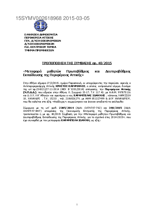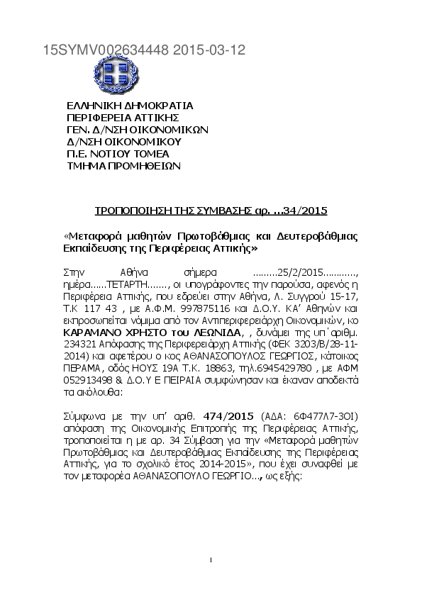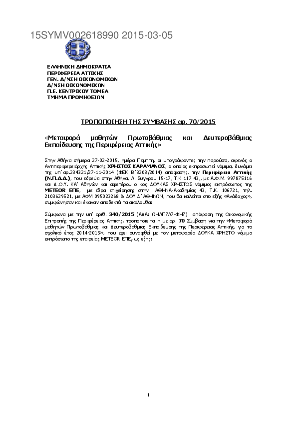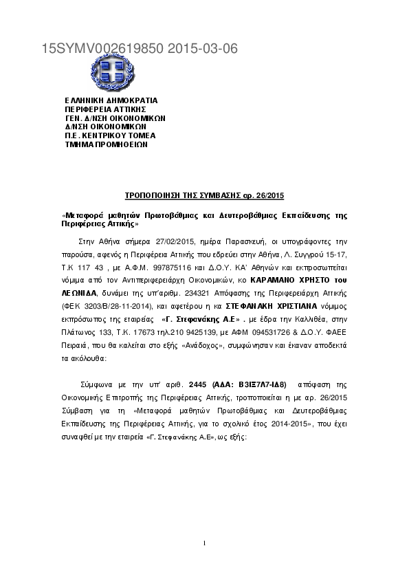 3. Τροποποίηση ΣΥΜΒΑΣΗΣ 26/2015 ΜΕΤΑΦΟΡΑΣ ΜΑΘΗΤΩΝ ΠΕΡΙΦΕΡΕΙΑΣ ΑΤΤΙΚΗΣ ΣΧ. ΕΤΟΥΣ 2014-2015