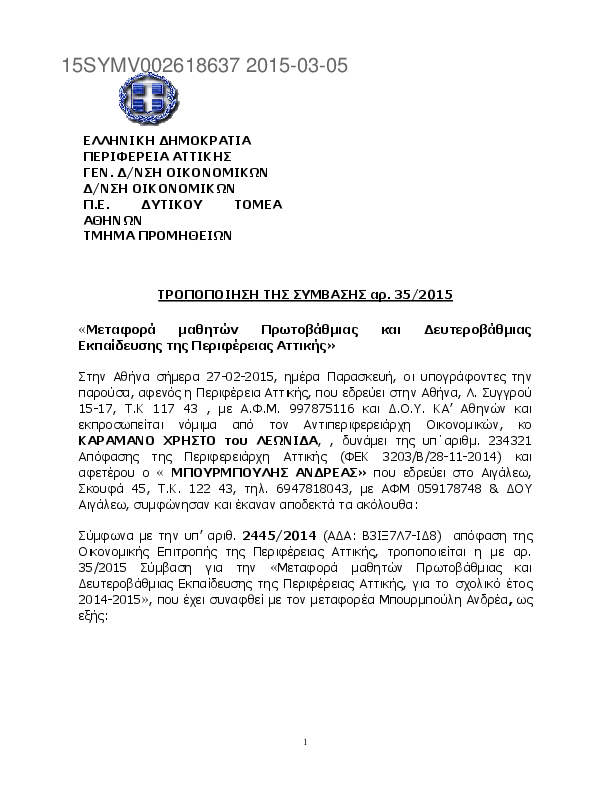4. ΤΡΟΠΟΠΟΙΗΣΗ ΣΥΜΒΑΣΗΣ 35/2015 ΜΕΤΑΦΟΡΑ ΜΑΘΗΤΩΝ ΑΘΜΙΑΣ ΒΘΜΙΑΣ ΕΚΠ Γ ΑΘΗΝΑΣ, ΜΠΟΥΡΜΠΟΥΛΗΣ ΑΝΔΡΕΑΣ