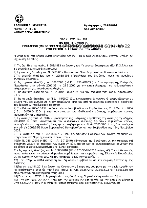 1. ΠΡΟΚΗΡΥΞΗ Νο. 653 ΓΙΑ ΤΗΝ ΠΡΟΜΗΘΕΙΑ ΕΡΓΑΛΕΙΩΝ (ΜΙΚΡΟΕΡΓΑΛΕΙΑ), ΑΝΑΛ. (ΜΙΚΡΟΕΡΓΑΛΕΙΩΝ) ΤΕΧΝΙΚΩ