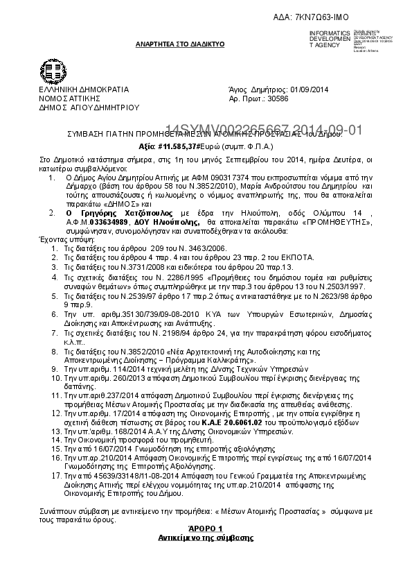5. ΣΥΜΒΑΣΗ ΓΙΑ ΤΗΝ ΠΡΟΜΗΘΕΙΑ ΜΕΣΩΝ ΑΤΟΜΙΚΗΣ ΠΡΟΣΤΑΣΙΑΣ