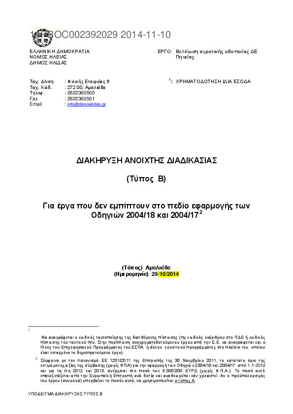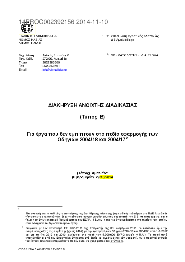 Αναζήτηση σε προκηρύξεις και συμβάσεις για: