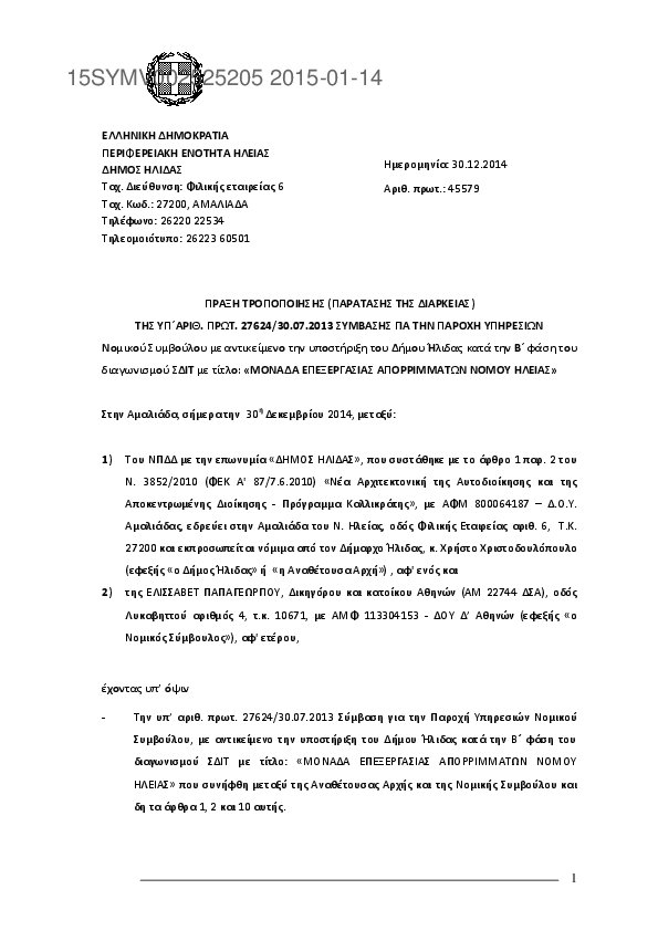 8. Τροποποίηση (παράταση διάρκειας) σύμβασης νομικού συμβούλου διαγωνισμού ΣΔΙΤ για ΜΕΑ Νομού Ηλείας