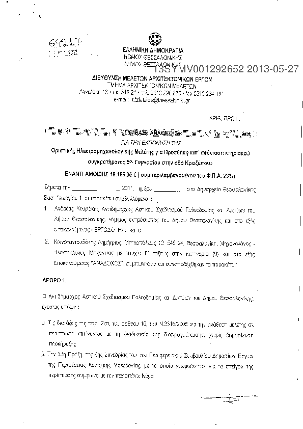 9. Οριστική Ηλεκτρομηχανολογική Μελέτη για Προσθήκη κατ' Επέκταση Κτιριακού Συγκροτήματος 5ου Γυμνασίου