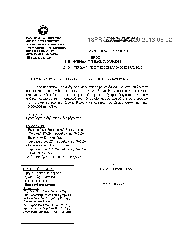 1. ΠΡΟΣΚΛΗΣΗ ΕΚΔΗΛΩΣΗΣ ΕΝΔΙΑΦΕΡΟΝΤΟΣ