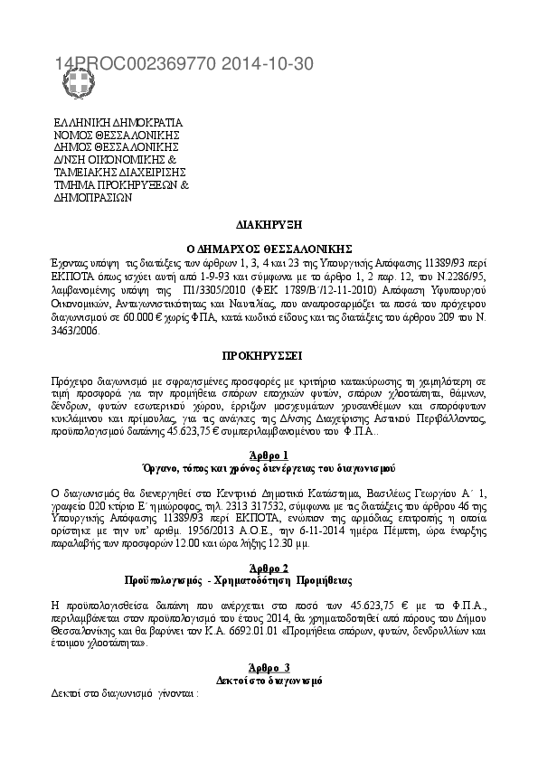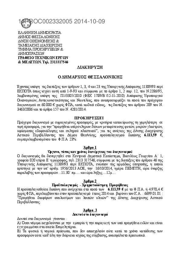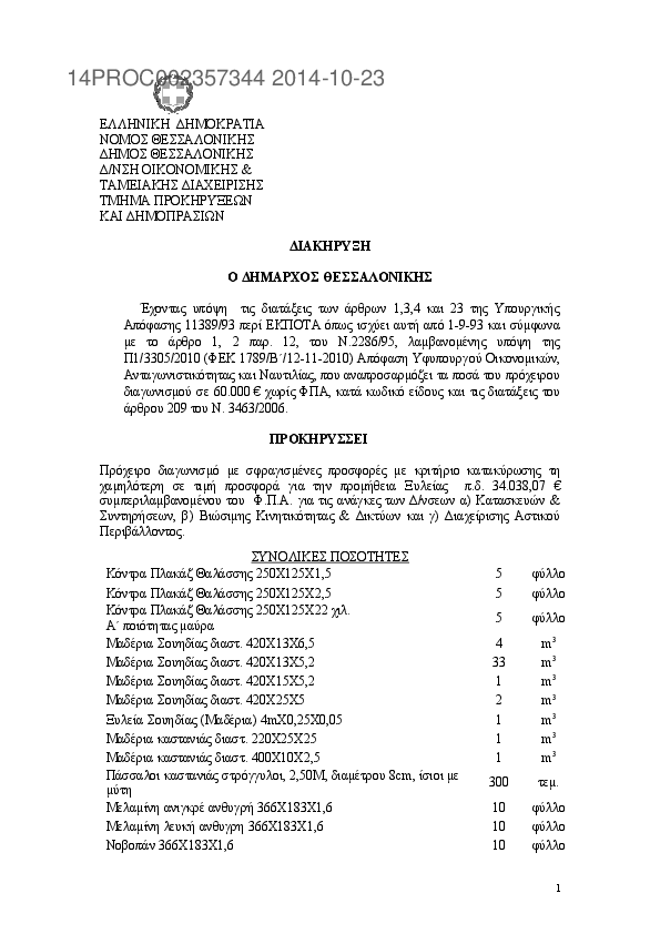 Αναζήτηση σε προκηρύξεις και συμβάσεις για: