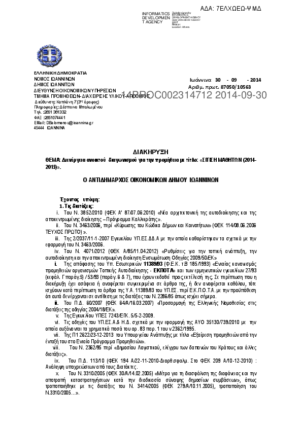 Αναζήτηση σε προκηρύξεις και συμβάσεις για:  δημοσ