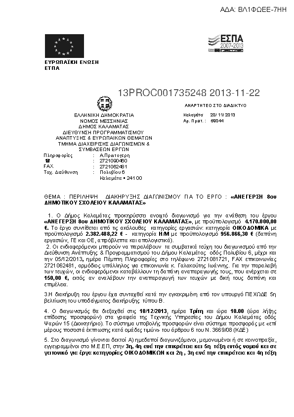 Αναζήτηση σε προκηρύξεις και συμβάσεις για: