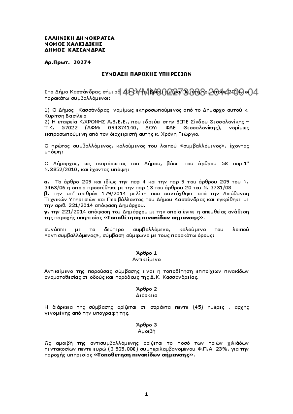 7. Διακήρυξη «Αποκομιδή απορριμμάτων Δ.Ε. Κασσάνδρας»,
