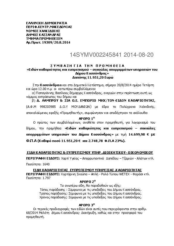 5. ΠΡΟΜΗΘΕΙΑ ΕΙΔΩΝ ΚΑΘΑΡΙΟΤΗΤΑΣ ΚΑΙ ΕΥΠΡΕΠΙΣΜΟΥ-ΣΑΚΟΥΛΕΣ ΑΠΟΡΡΙΜΜΑΤΩΝ ΥΠΗΡΕΣΙΩΝ ΤΟΥ ΔΗΜΟΥ ΚΑΣΣΑΝΔΡΑΣ
