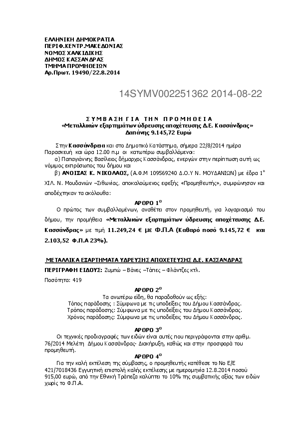 2. ΠΡΟΜΗΘΕΙΑ ΜΕΤΑΛΛΙΚΩΝ ΕΞΑΡΤΗΜΑΤΩΝ ΥΔΡΕΥΣΗΣ ΑΠΟΧΕΤΕΥΣΗΣ Δ.Ε. ΚΑΣΣΑΝΔΡΑΣ