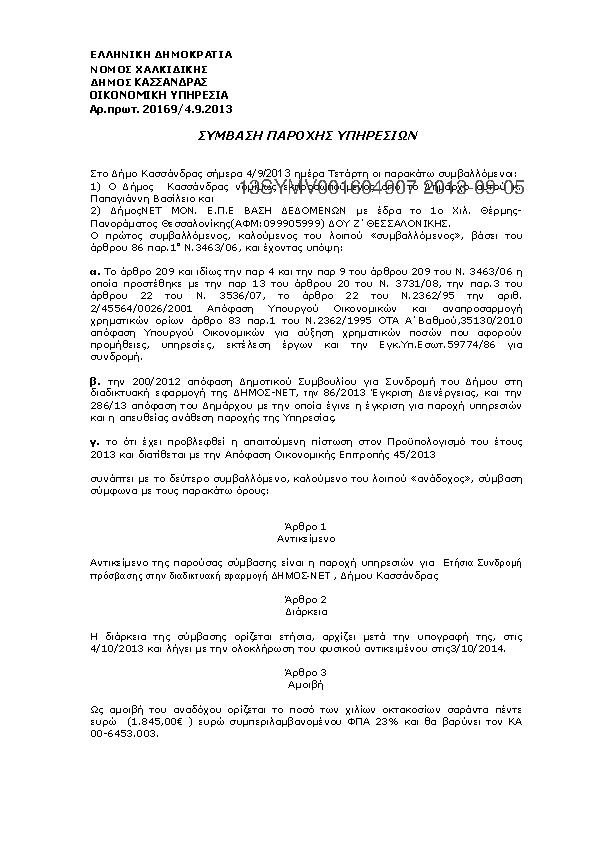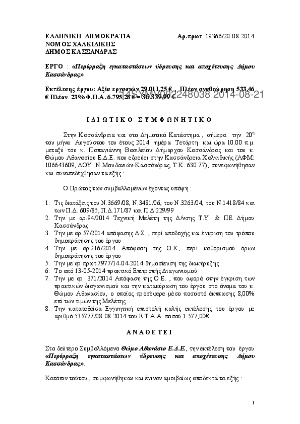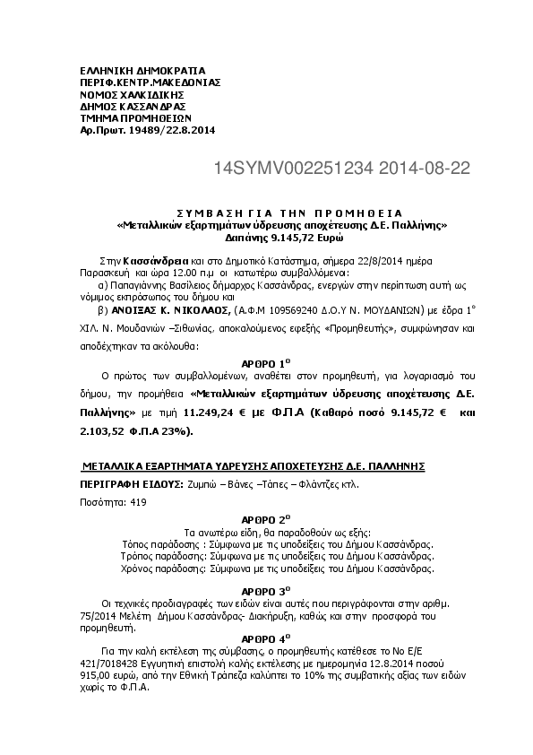 10. Διακήρυξη «Συντήρηση δικτύων ύδρευσης-αποχέτευσης Δ.Ε. Κασσάνδρας»,