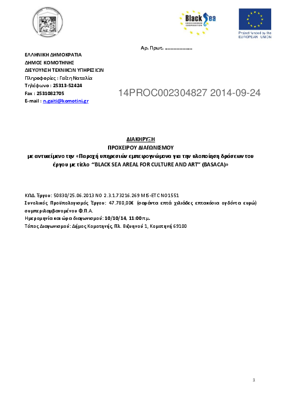 Αναζήτηση σε προκηρύξεις και συμβάσεις για: