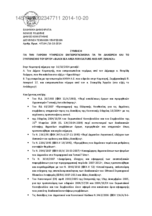 2. ΣΥΜΒΑΣΗ ΓΙΑ ΤΗΝ ΠΑΡΟΧΗ ΥΠΗΡΕΣΙΩΝ ΕΜΠΕΙΡΟΓΝΩΜΟΝΑ ΓΙΑ ΤΗ ΔΙΑΧΕΙΡΙΣΗ ΚΑΙ ΤΟ ΣΥΝΤΟΝΙΣΜΟ ΤΟΥ ΕΡΓΟΥ «BLACK