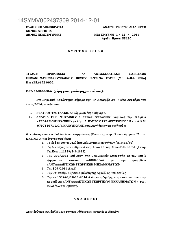 6. ΠΡΟΜΗΘΕΙΑ ΑΝΤΑΛΛΑΚΤΙΚΩΝ ΓΕΩΡΓΙΚΩΝ ΜΗΧΑΝΗΜΑΤΩΝ