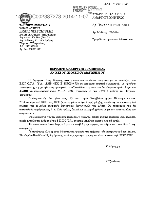 Αναζήτηση σε προκηρύξεις και συμβάσεις για: