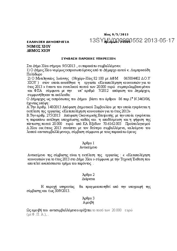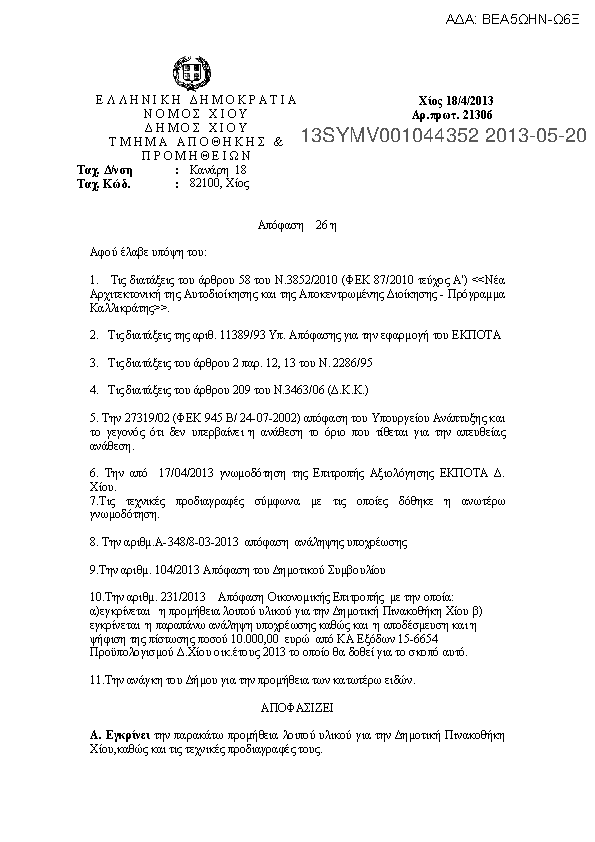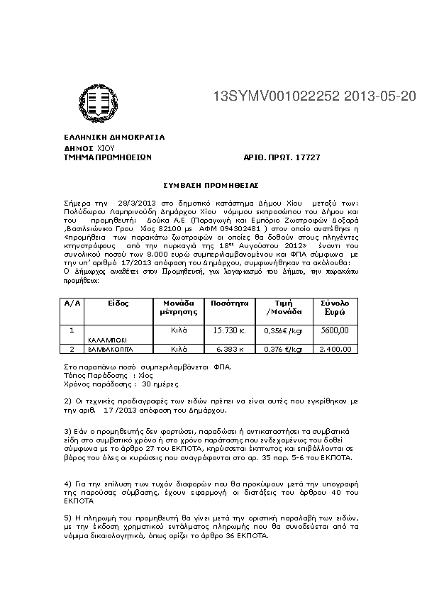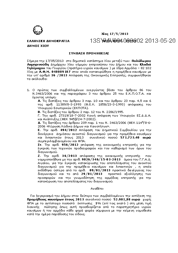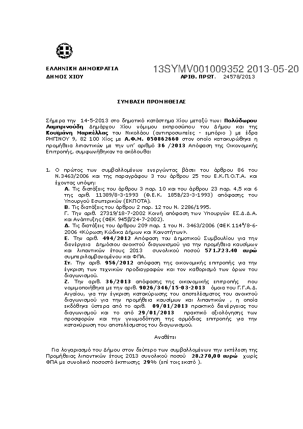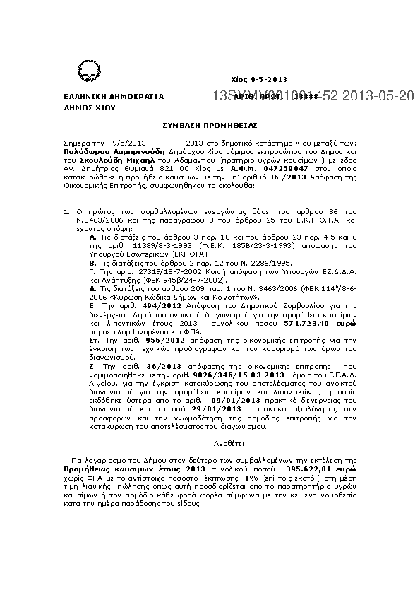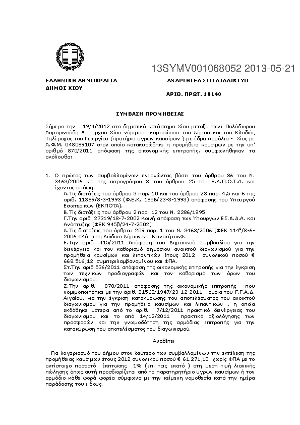 8. Προμήθεια καυσίμων και λιπαντικών Δ.Χίου οικ.έτους 2013