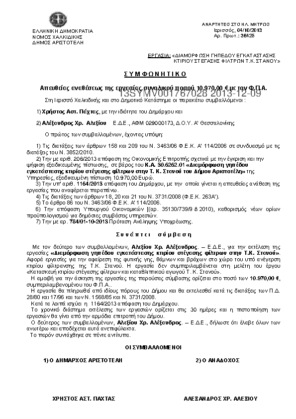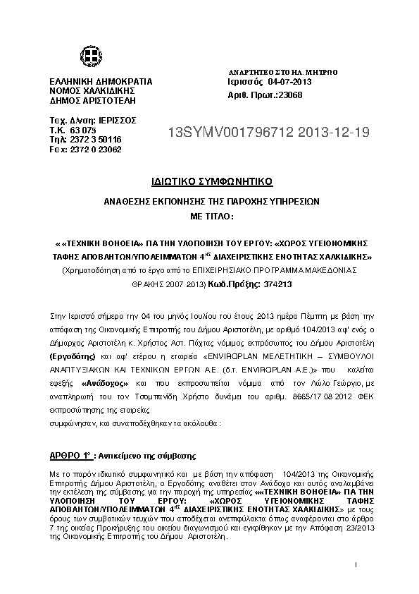 4. ΣΥΜΦΩΝΗΤΙΚΟ ΠΡΟΜΗΘΕΙΑ ΚΑΙ ΤΟΠΟΘΕΤΗΣΗ ΕΤΟΙΜΟΥ ΧΛΟΟΤΑΠΗΤΑ ΣΕ ΧΩΡΟΥΣ ΠΡΑΣΙΝΟΥ ΤΗΣ Δ.Ε. ΑΡΝΑΙΑΣ