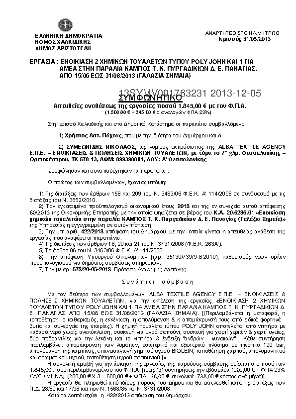6. ΣΥΜΦΩΝΗΤΙΚΟ ΕΝΟΙΚΙΑΣΗ 2 ΧΗΜΙΚΩΝ ΤΟΥΑΛΕΤΩΝ ΤΥΠΟΥ POLY JOHN ΚΑΙ 1 ΓΙΑ ΑΜΕΑ ΣΤΗΝ ΠΑΡ