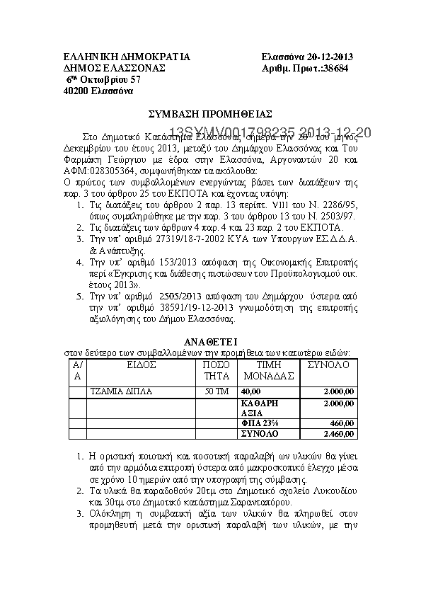 7. ΣΥΜΒΑΣΗ ΓΙΑ ΠΡΟΜΗΘΕΙΑ ΛΙΠΑΝΤΙΚΩΝ