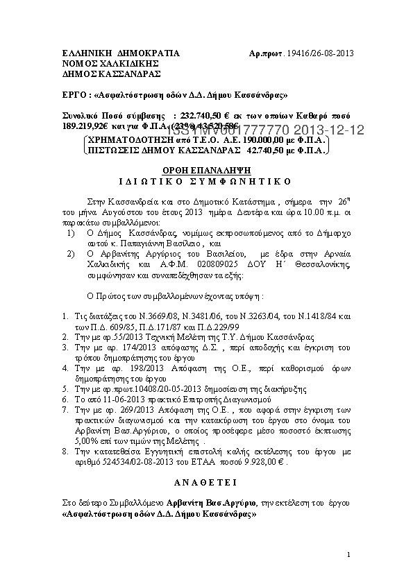 10. ΑΣΦΑΛΤΟΣΤΡΩΣΗ ΟΔΩΝ Δ.Δ. ΔΗΜΟΥ ΚΑΣΣΑΝΔΡΑΣ