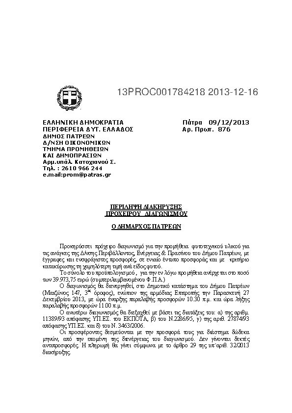 Αναζήτηση σε προκηρύξεις και συμβάσεις για: