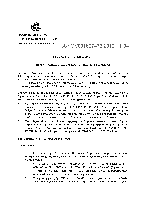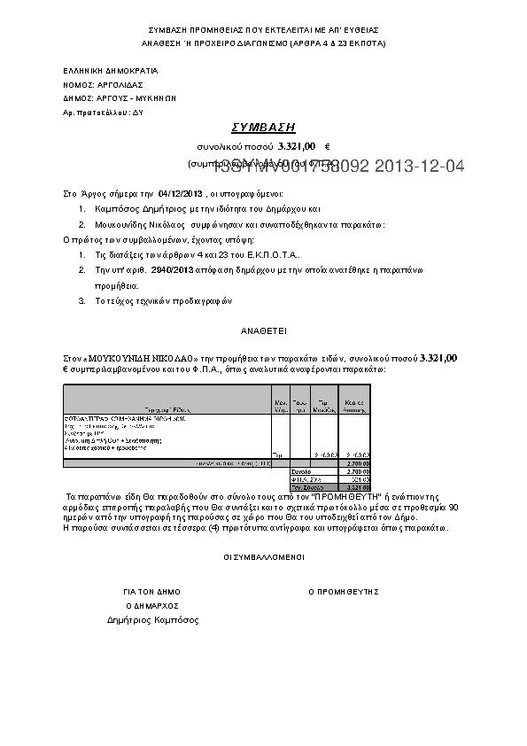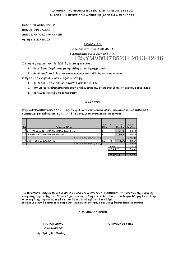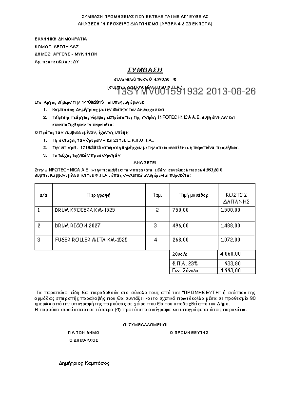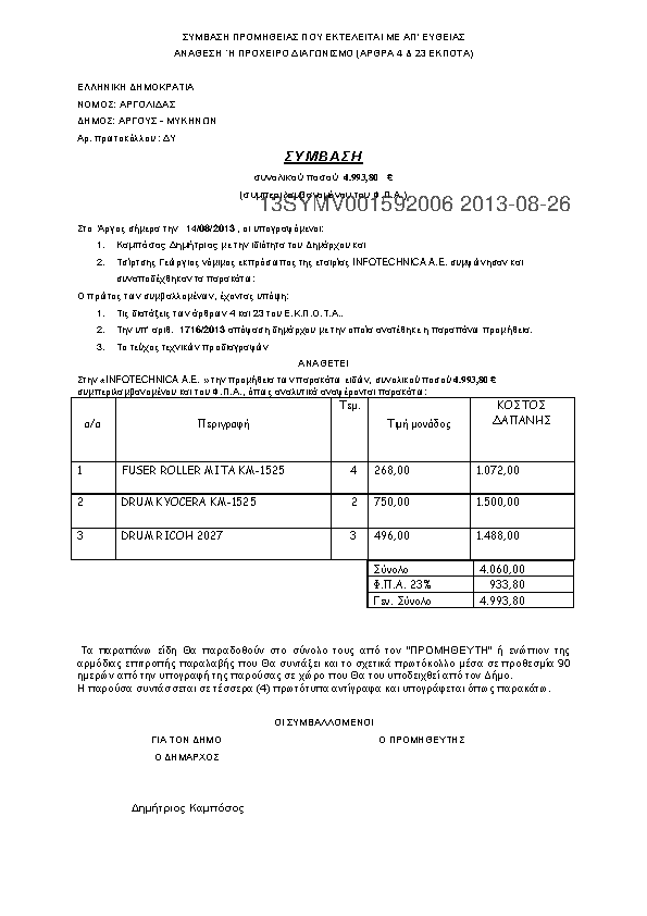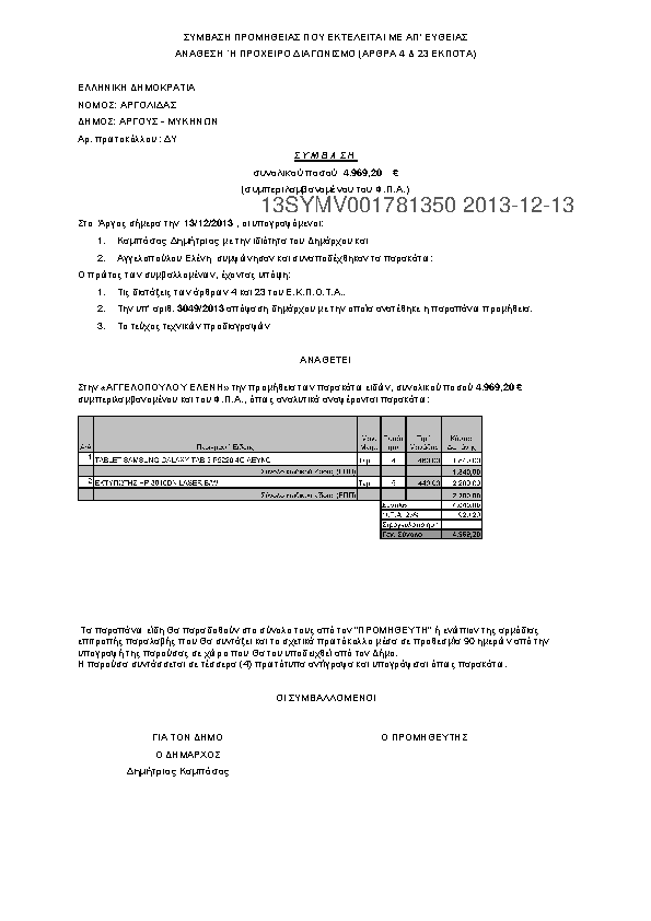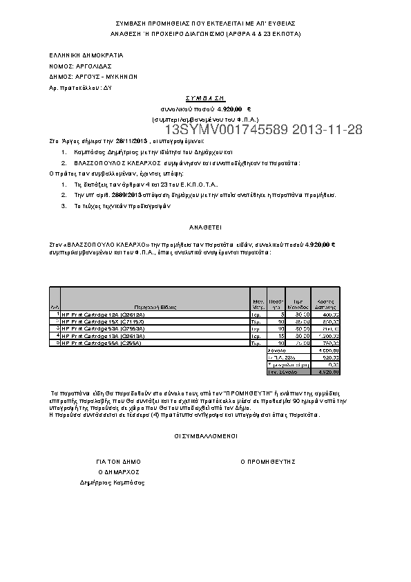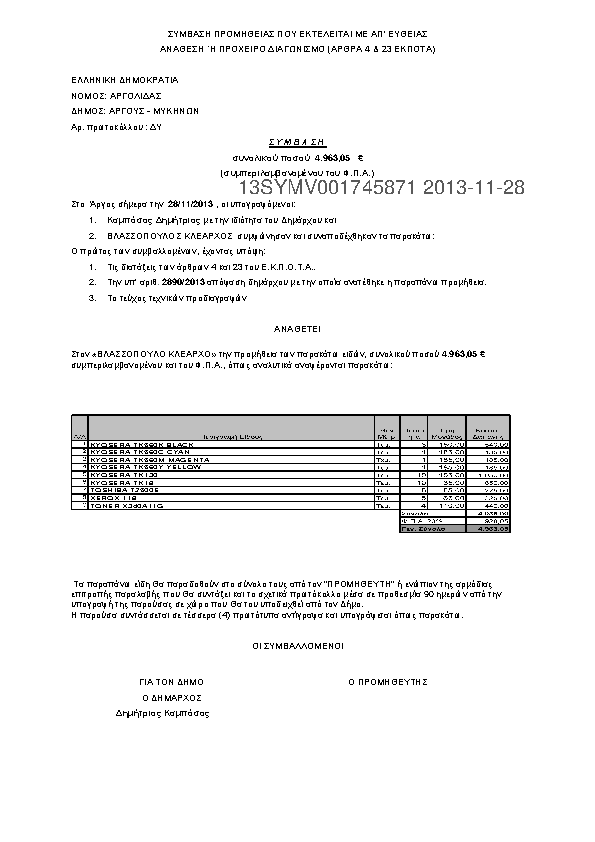 5. Σύμβαση προμήθειας Η/Υ εκτυπωτών και οθονών ΔΕ Άργους