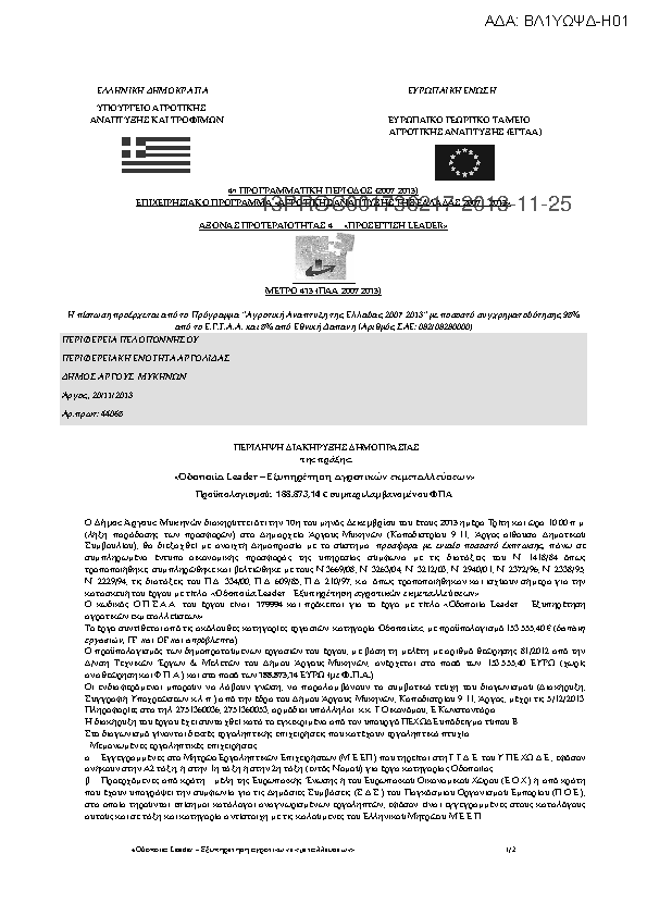 2. ΠΕΡΙΛΗΨΗ ΔΙΑΚΗΡΥΞΗΣ ΤΟΥ ΕΡΓΟΥ ΟΔΟΠΟΙΙΑ LEADER