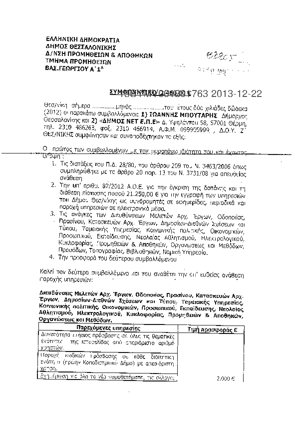 10. Έγκριση δαπάνης ποσού 402.890,00€ για την διετία 2013