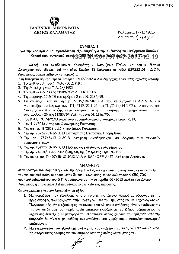 9. ΕΠΕΚΤΑΣΗ ΑΣΥΡΜΑΤΟΥ ΔΙΚΤΥΟΥ ΔΗΜΟΥ ΚΑΛΑΜΑΤΑΣ