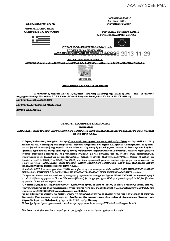 8. ΠΕΡΙΛΗΨΗ ΔΙΑΚΗΡΥΞΗΣ ΔΙΑΓΩΝΙΣΜΟΥ ΤΟΥ ΕΡΓΟΥ '' ΑΝΑΠΛΑΣΗ ΠΕΖΟΔΡΟΜΩΝ ΑΓΙΟΥ ΝΙΚΟΛΑΟΥ