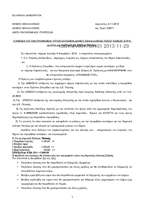 3. Προμήθεια καυσίμων και λιπαντικών για κίνηση μεταφορικών μέσων Δ.Ε. ΛΕΙΒΑΘΟΥΣ