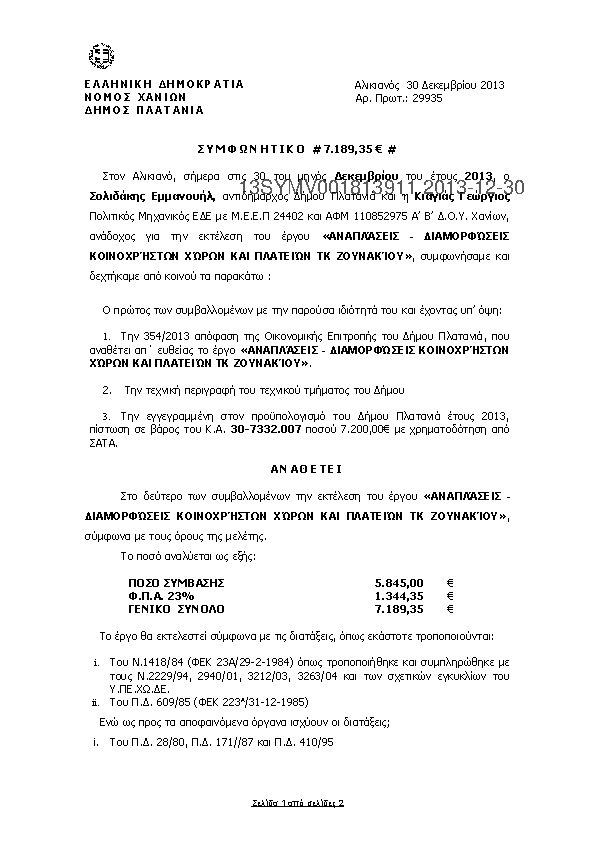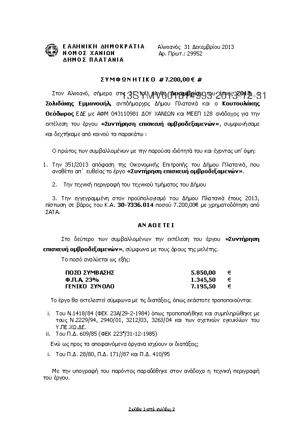 7. «Επισκευές ηλεκτρολογικών εγκαταστάσεων Δημοτικών κτιρίων ΔΕ Πλατανιά»