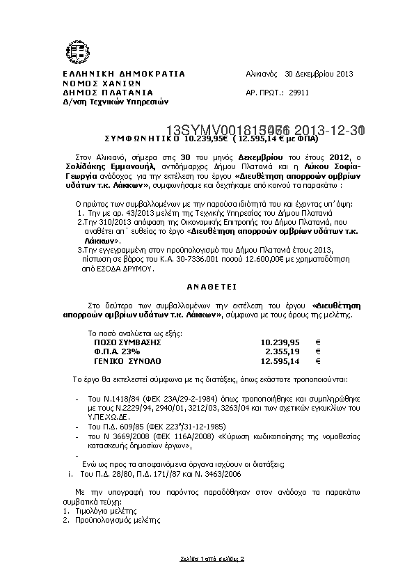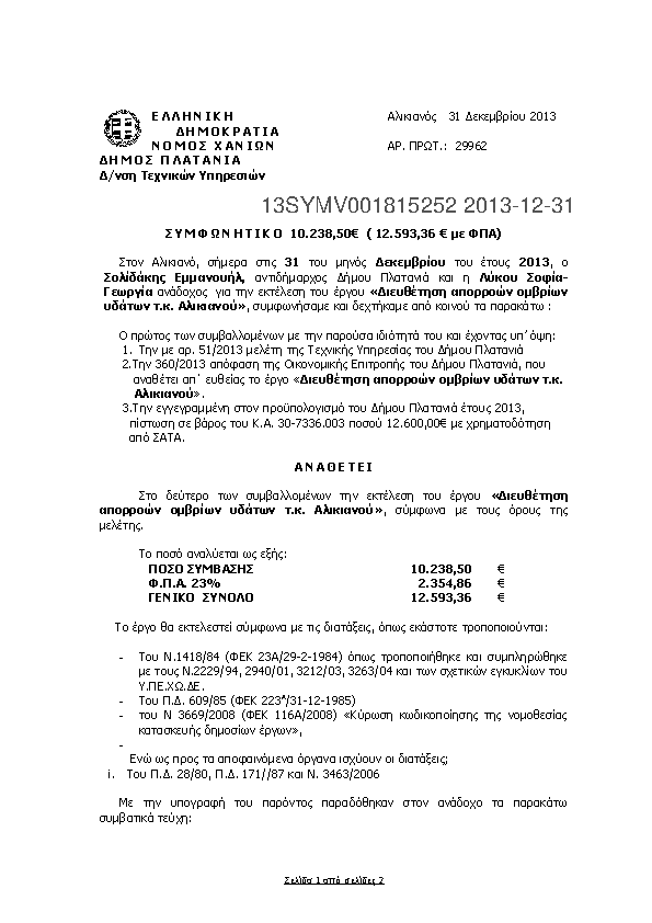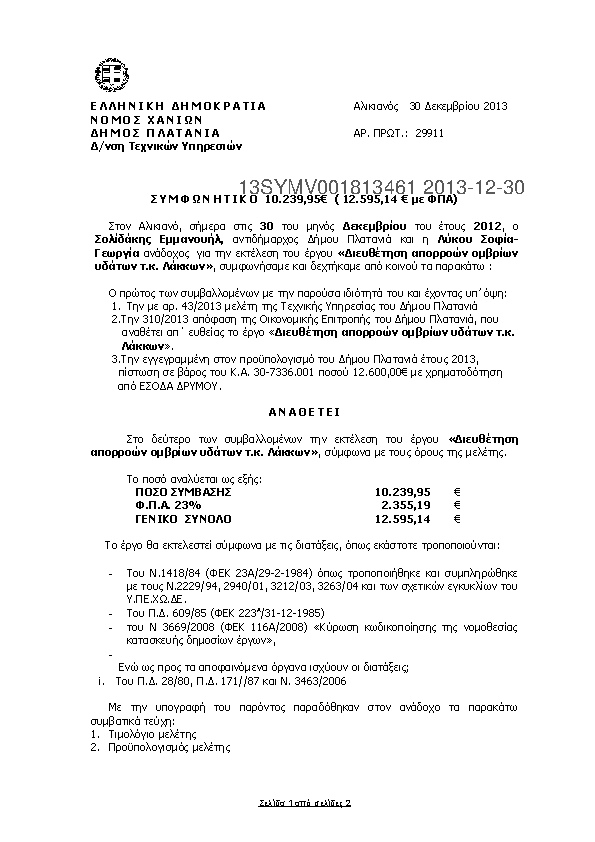 10. Συμφωνητικό για «Επισκευές ηλεκτρολογικών εγκαταστάσεων Δημ. Κτιρίων ΔΕ Μουσούρων»