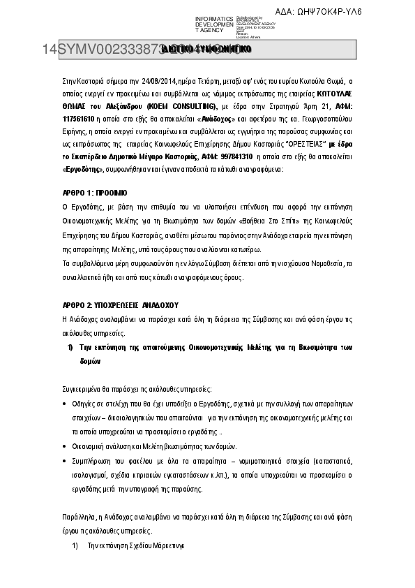 1. ΙΔΙΩΤΙΚΟ ΣΥΜΦΩΝΗΤΙΚΟ ΣΥΝΤΑΞΗΣ ΜΕΛΕΤΗΣ ΒΙΩΣΙΜΟΤΗΤΑΣ ΣΠΗΛΑΙΟΥ ΤΟΥ ΔΡΑΚΟΥ