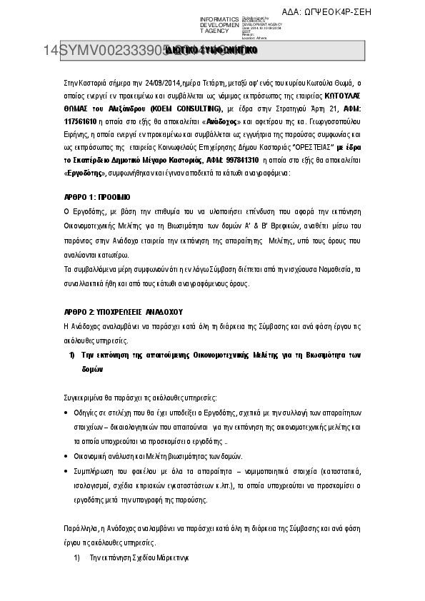 3. ΙΔΙΩΤΙΚΟ ΣΥΜΦΩΝΗΤΙΚΟ ΣΥΝΤΑΞΗΣ ΜΕΛΕΤΗΣ ΒΙΩΣΙΜΟΤΗΤΑΣ ΒΣΣ