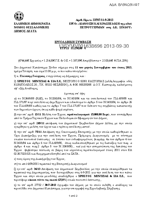 1. ΔΙΑΝΟΙΞΗ ΚΑΙ ΚΡΑΣΠΕΔΩΣΗ της οδού ΠΕΤΡΟΥ ΓΕΡΜΆΝ στη Δ.Κ. ΣΙΝΔΟΥ
