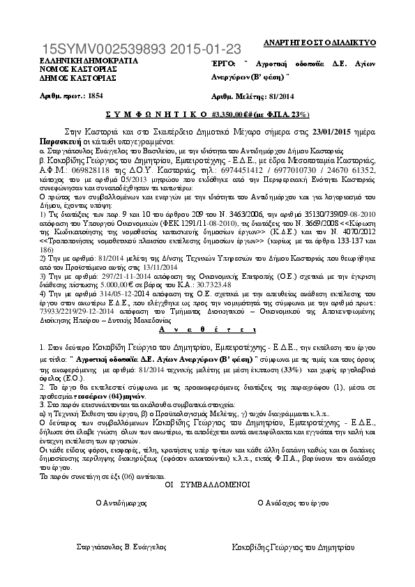 1. Αγροτική οδοποιϊα Δ.Ε. Αγίων Αναργύρων (Β' φάση), Α.Μ. 81/2014
