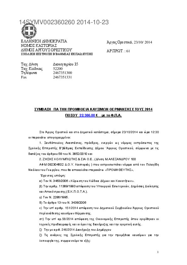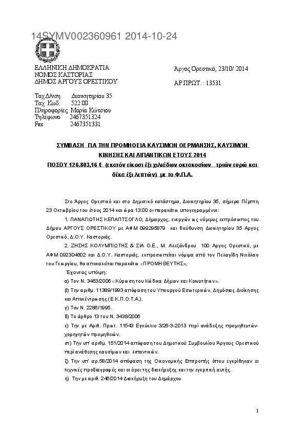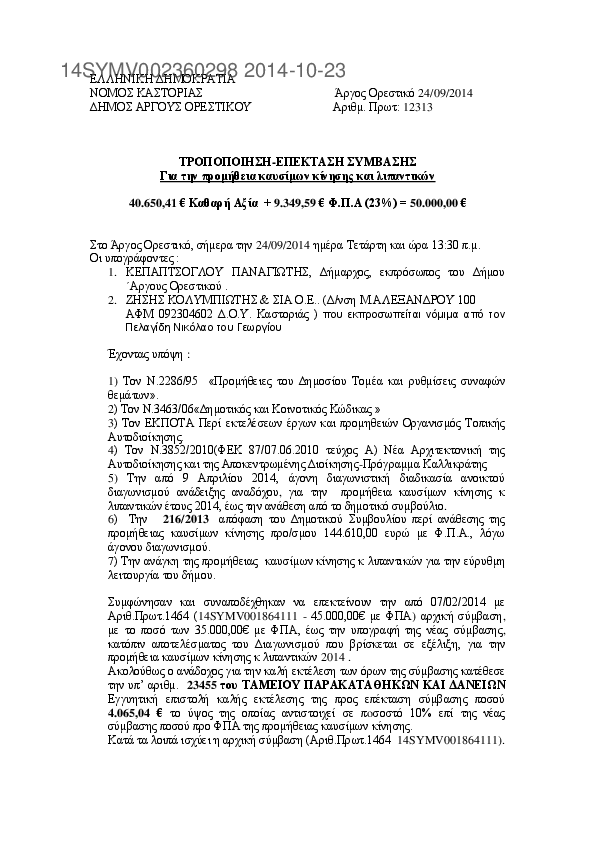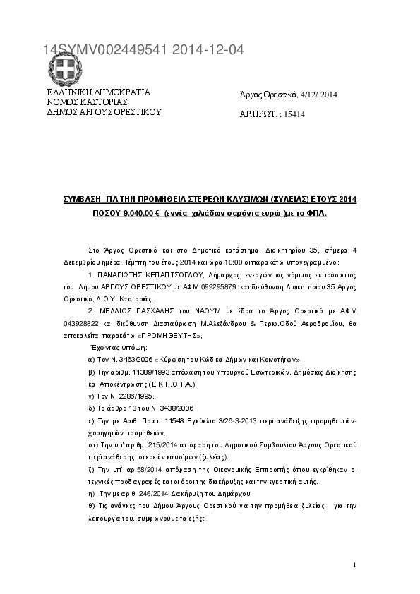 5. ΠΡΟΜΗΘΕΙΑ ΚΑΥΣΙΜΩΝ ΘΕΡΜΑΝΣΗΣ,ΚΑΥΣΙΜΩΝ ΚΙΝΗΣΗΣ ΚΑΙ ΛΙΠΑΝΤΙΚΩΝ ΔΗΜΟΥ ΑΡΓΟΥΣ ΟΡΕΣΤΙΚΟΥ