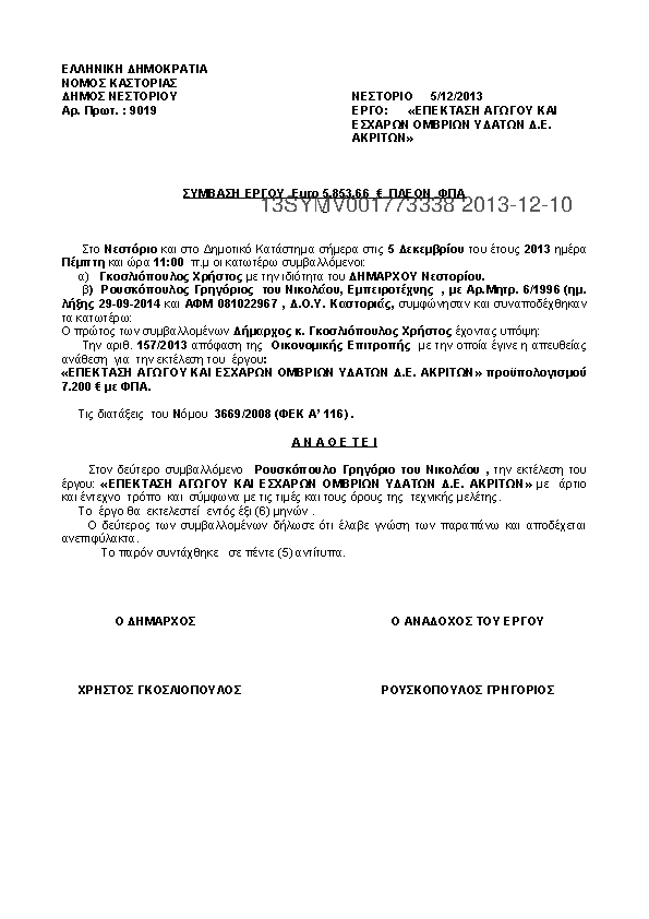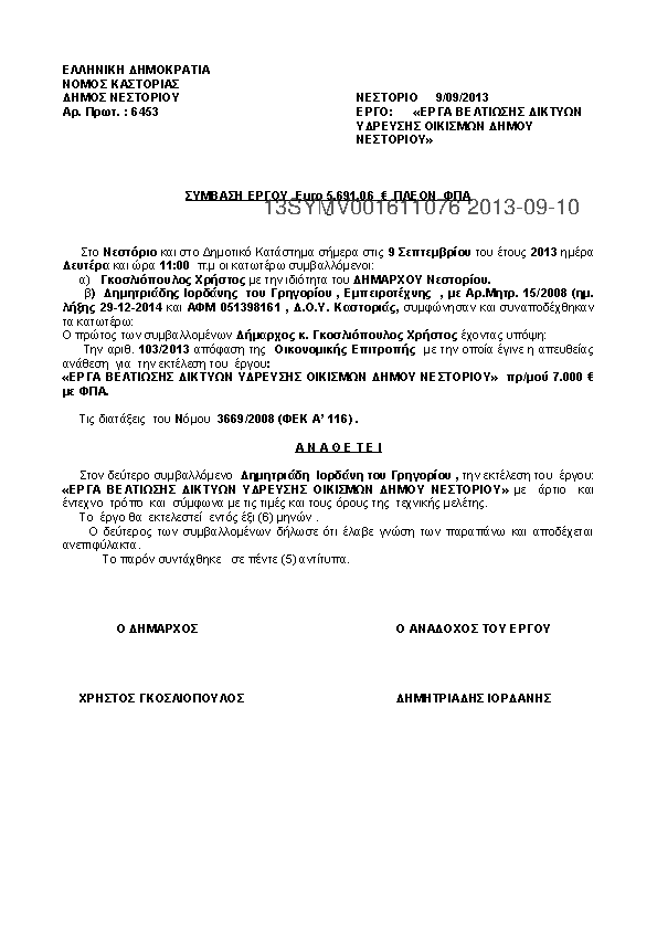 8. ΕΡΓΑ ΒΕΛΤΙΩΣΗΣ ΔΙΚΤΥΩΝ ΥΔΡΕΥΣΗΣ ΟΙΚΙΣΜΩΝ ΔΗΜΟΥ ΝΕΣΤΟΡΙΟΥ