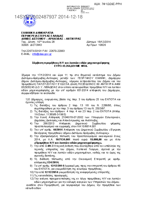 Αναζήτηση σε προκηρύξεις και συμβάσεις για: