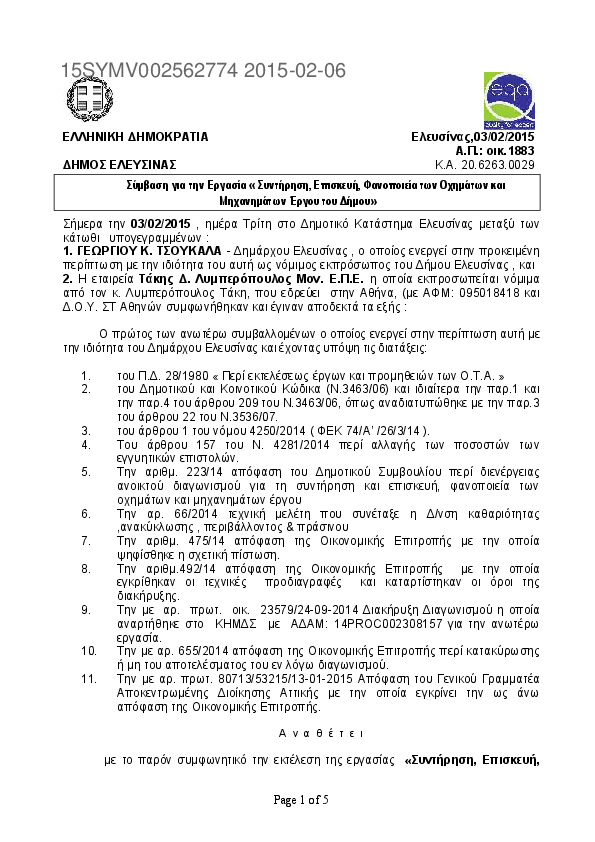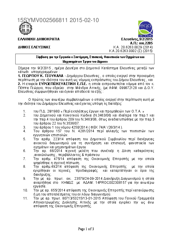 3. ΣΥΝΤΗΡΗΣΗ ΕΠΙΣΚΕΥΗ ΦΑΝΟΠΟΙΕΙΑ ΤΩΝ ΟΧΗΜΑΤΩΝ ΚΑΙ ΜΗΧΑΝΗΜΑΤΩΝ ΕΡΓΟΥ ΤΟΥ ΔΗΜΟΥ