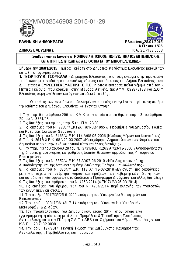 2. ΠΡΟΜΗΘΕΙΑ & ΤΟΠΟΘΕΤΗΣΗ ΣΥΣΤΗΜΑΤΟΣ ΑΝΤΙΕΜΠΛΟΚΗΣ ΚΑΤΑ ΤΗΝ ΠΕΔΗΣΗ ΣΑΠ (ΑΒS) ΣΕ ΟΧΗΜΑΤΑ ΤΟΥ ΔΗΜΟΥ ΕΛΕΥΣΙ